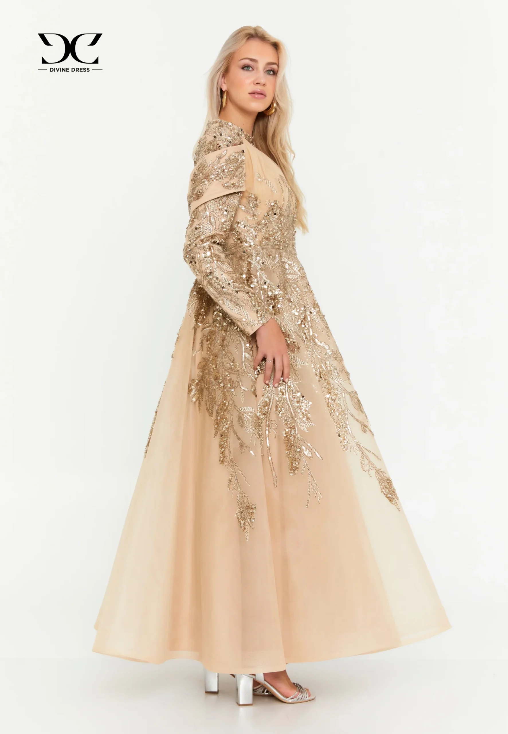 Avec la robe soirée dorée Divine Dress, laissez une impression inoubliable et rayonnez de grâce lors de vos plus beaux moments.