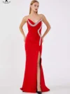 Robe de soirée VELOURA – Satin bordeaux élégant à bretelles fines